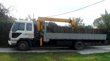 Не большой, но очень мощный манипулятор.Не большое расстояние между осями и маленькая ширина борта, делает его очень манёвренным, даже в цеху и других помещениях.Большой выход опор позволяет легко работать на большом вылете.