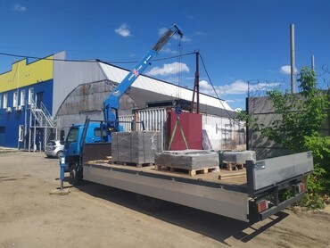 Доставка грузов - ЖБИ кольца, блоки, тротуарная плитка, кирпич, металлопрокат, пиломатериал и др. Монтаж металлоконструкций. Доставка силикатного кирпича с захватом.